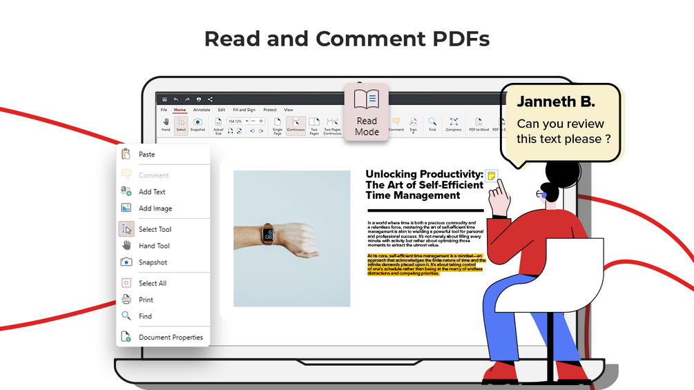 - READ and Comment PDFs – Intuitive reading modes & document commenting and mark up.
